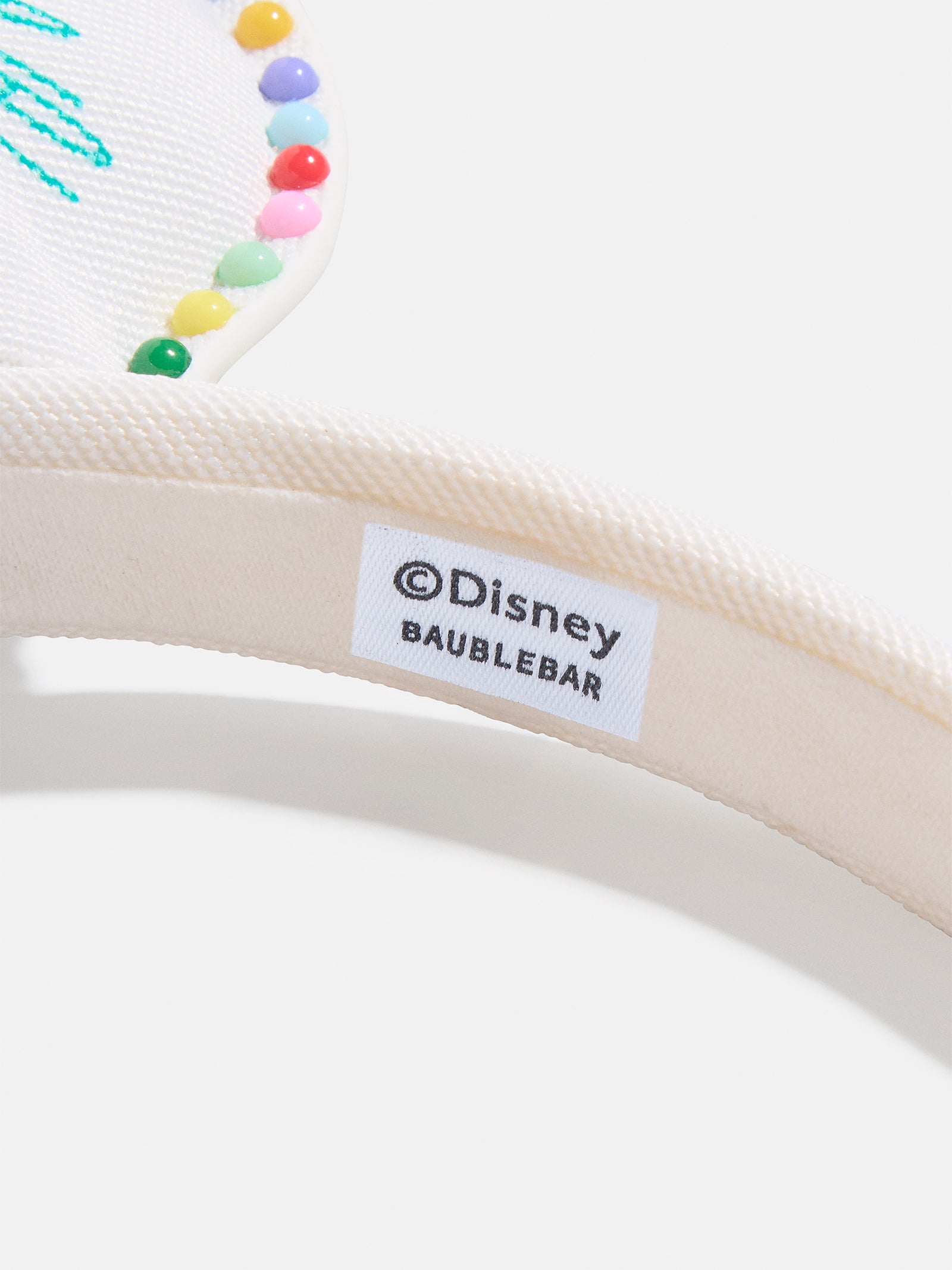 Show off your love for all things Disney with the Disney Minnie Mouse Signature Ears Headband! The white ears are covered in character signatures in their signature colors. and a charming red bow completes the look. Wear it to the park. a Disney-themed party. or even while binging your favorite classics.