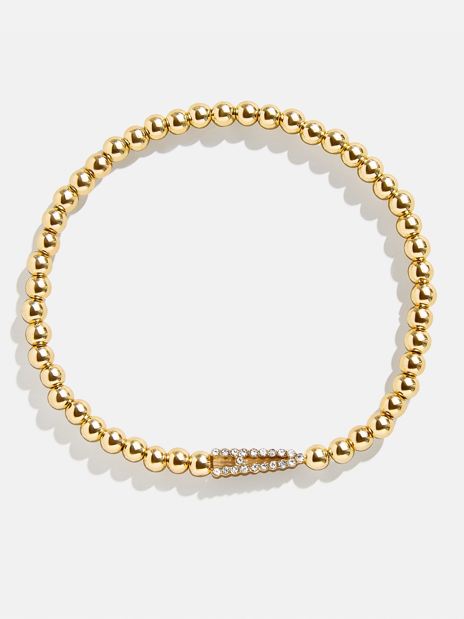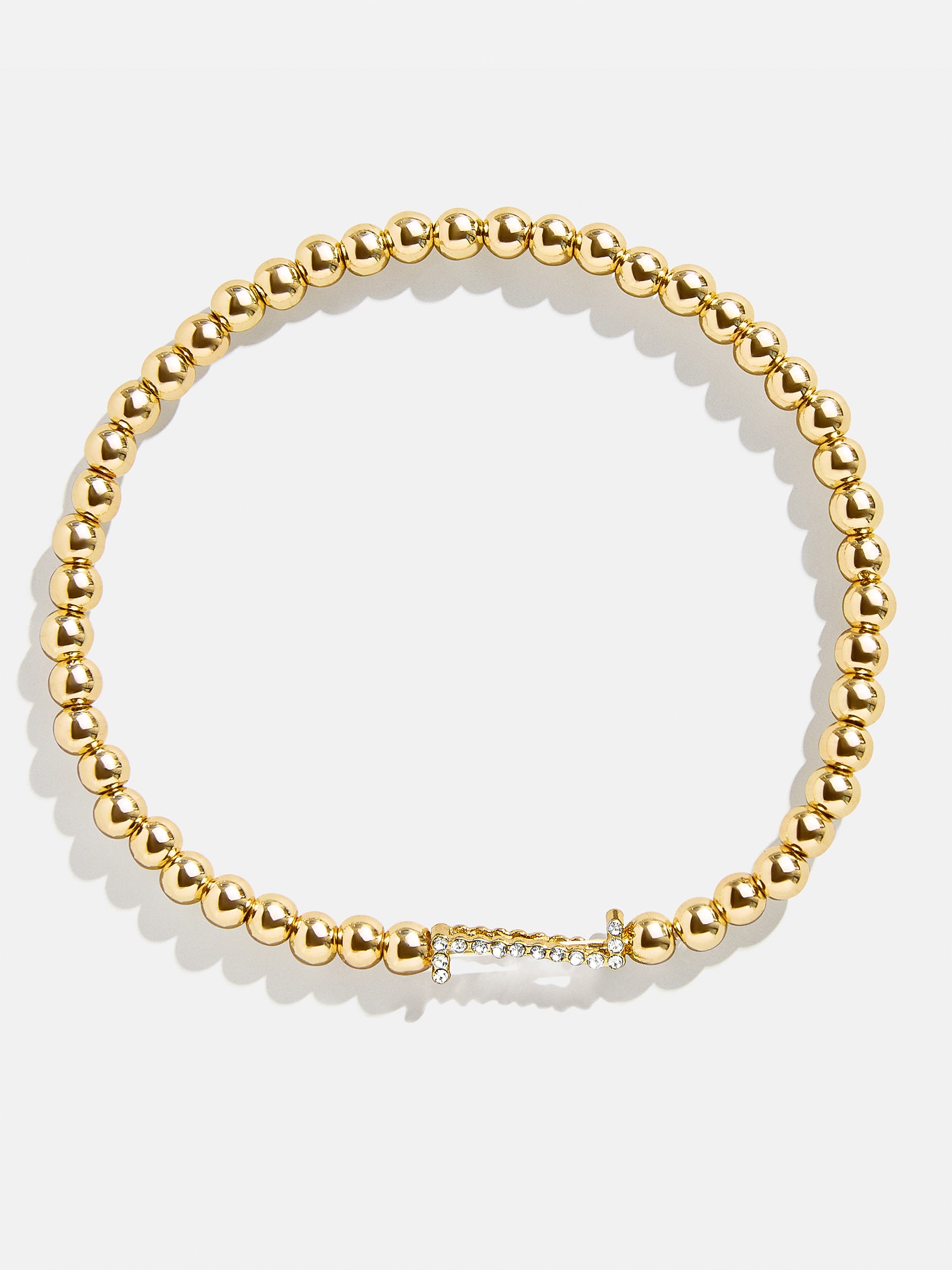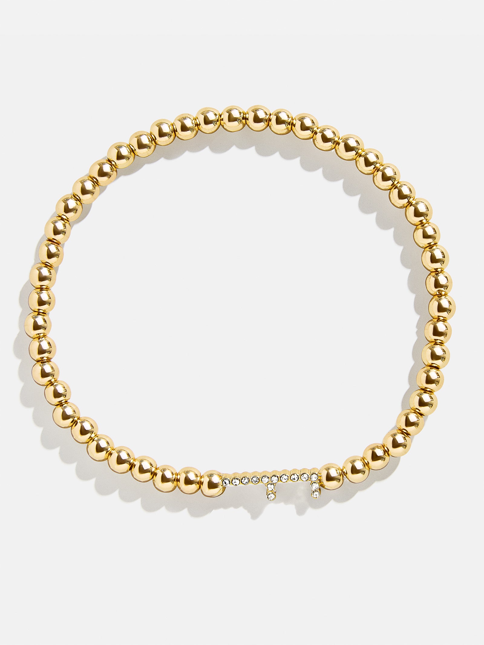 Twist up your wrist stack with a personal touch. The East West Initial Pisa Bracelet is a stretch bracelet crafted with classic pisa beads. and the sideways initial of your choice. Customize it with your initial or the initial of someone special. Either way. you’ll create a signature bracelet that makes for chic everyday wearing. This bracelet features 4mm gold beads.