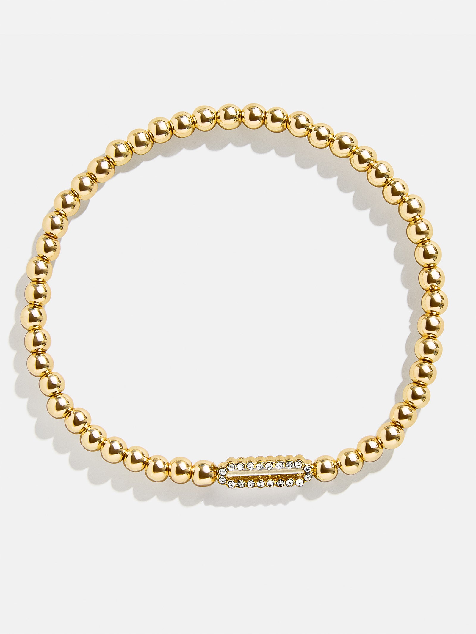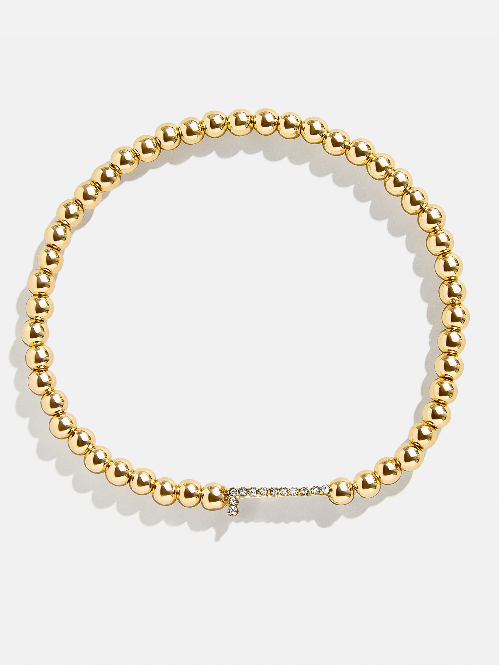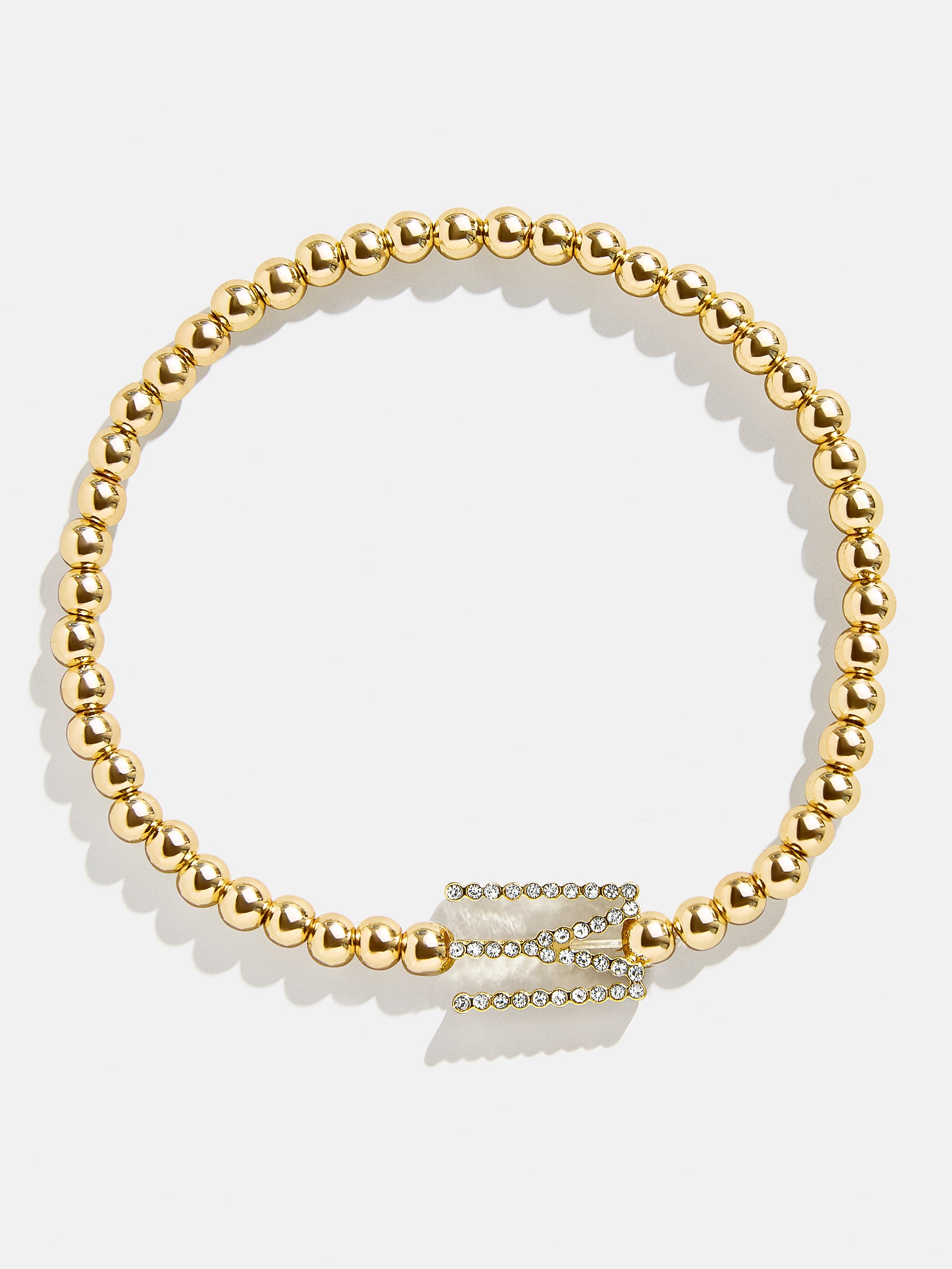Twist up your wrist stack with a personal touch. The East West Initial Pisa Bracelet is a stretch bracelet crafted with classic pisa beads. and the sideways initial of your choice. Customize it with your initial or the initial of someone special. Either way. you’ll create a signature bracelet that makes for chic everyday wearing. This bracelet features 4mm gold beads.