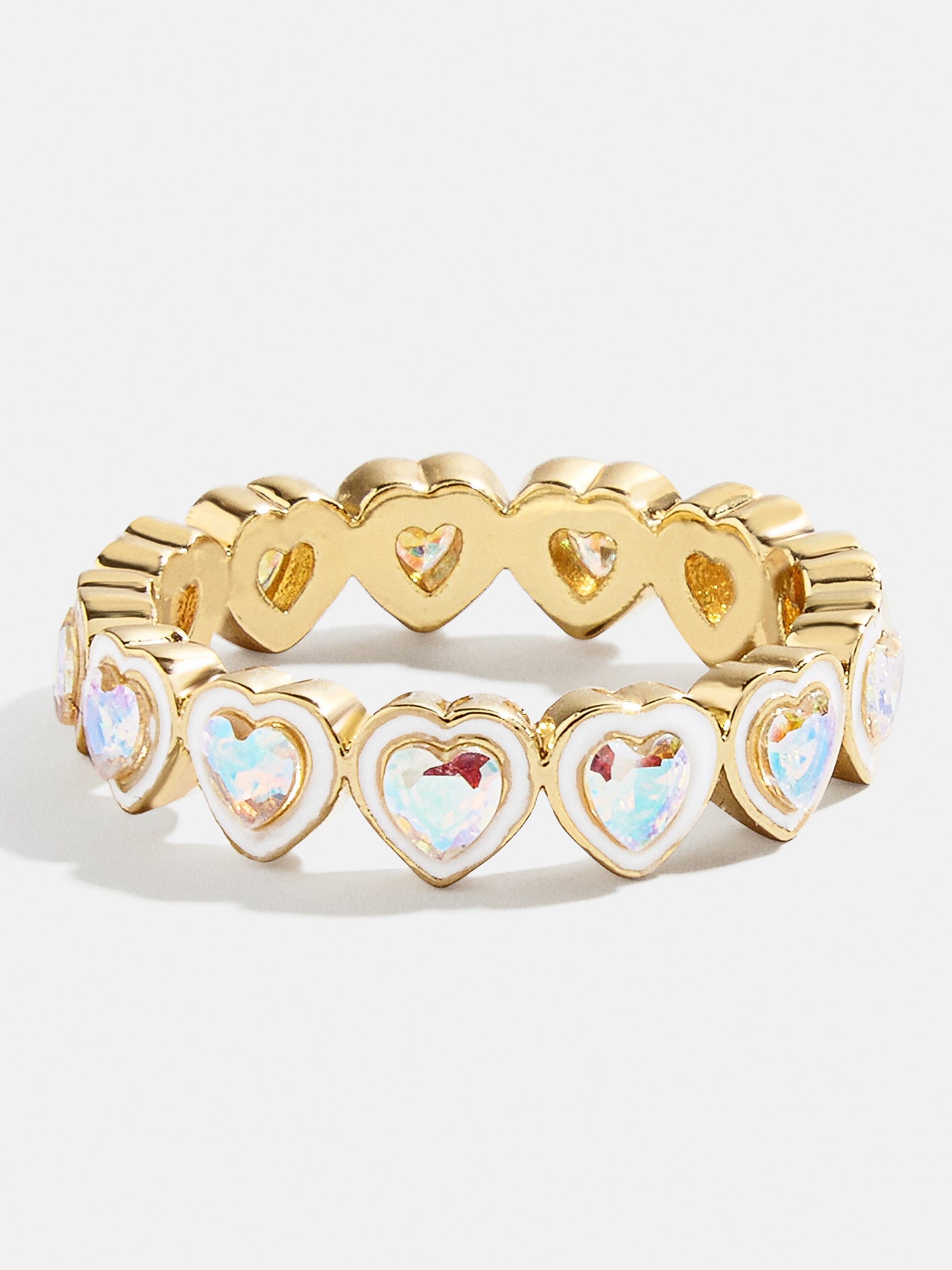 Our Kali collection just got another style that’s sure to become one of your everyday favorites. The Kali Ring features an eternity ring band fitted with heart-shaped iridescent crystals. It’s the perfect ring to add to your stack.